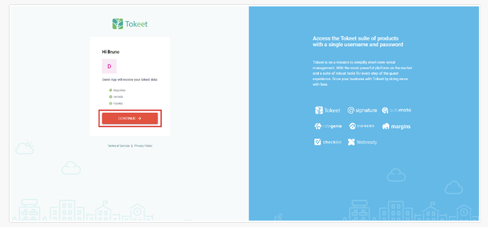 2. Activar a integração ligando ambas as contas, seleccionando Tokeet e seguindo os passos que o seu sistema lhe pede que siga.