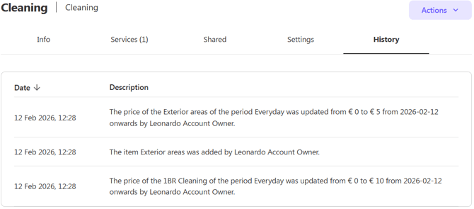 Agora, todas as alterações de serviço são registadas no histórico do catálogo.